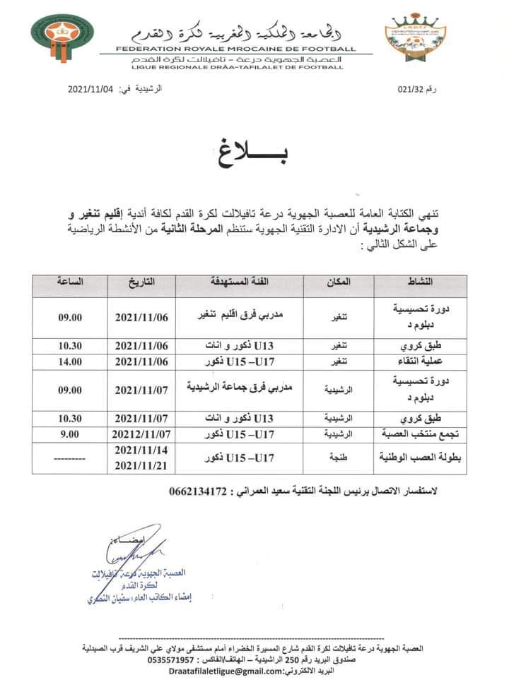 Vandaag, 6 november 2021, vond er een voetbalfestival plaats; Georganiseerd door de Draa-Tafilalet League; In Tinghir heeft de Dades Sports Association haar aanwezigheid geregistreerd volgens het vastgestelde programma
